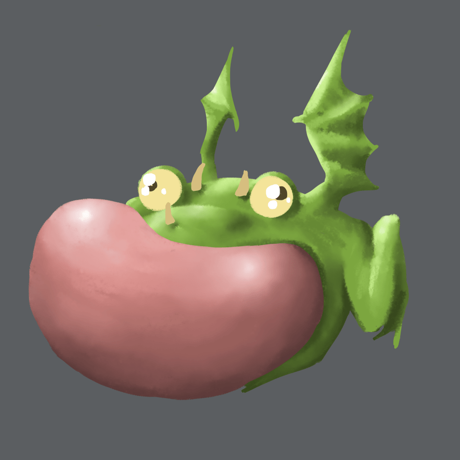 Here is a little creature I did. I wanted to draw a dragon-like creature, but not a pompous, very generic dragon, so I came up with this little goofball.