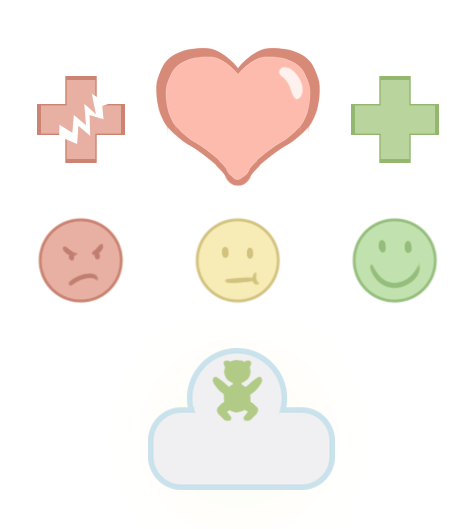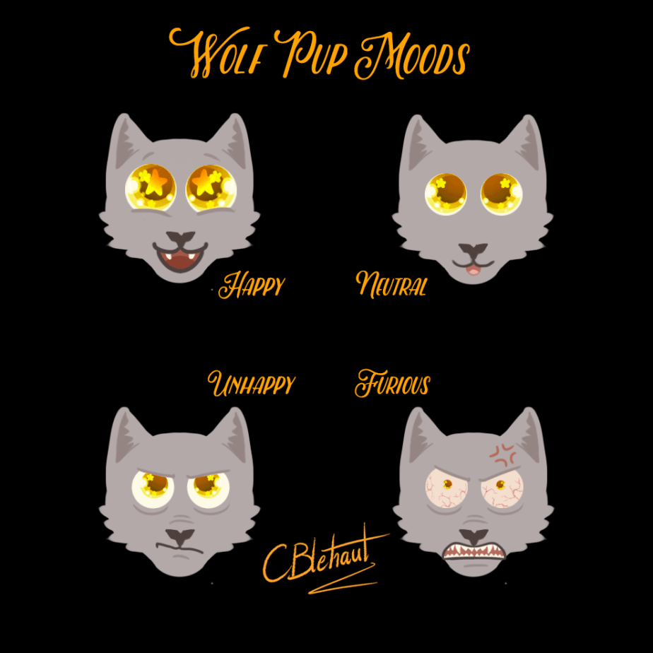 I created the characters and all their facial expressions, and a bit of the UI (symbols for health and mood, the score bar, the players hearts, the logo).